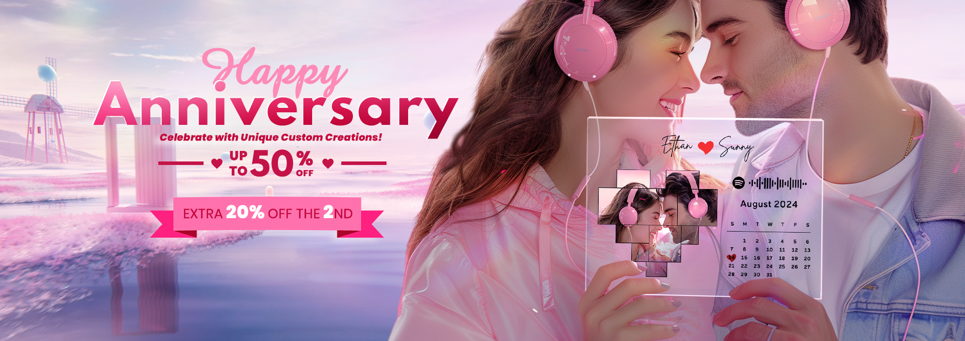 Two-sided Spotify And Calendar Plaque Custom Photo Music Plaque Gift -