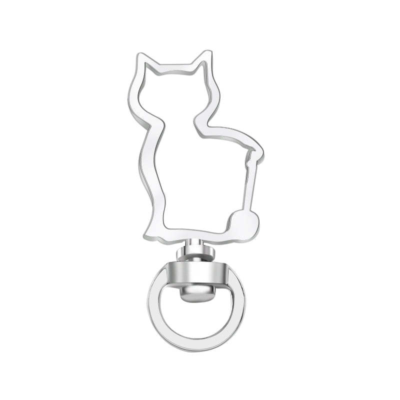 Portachiavi a moschettone girevole a forma di gatto Portachiavi in metallo con moschettone a molla Argento
