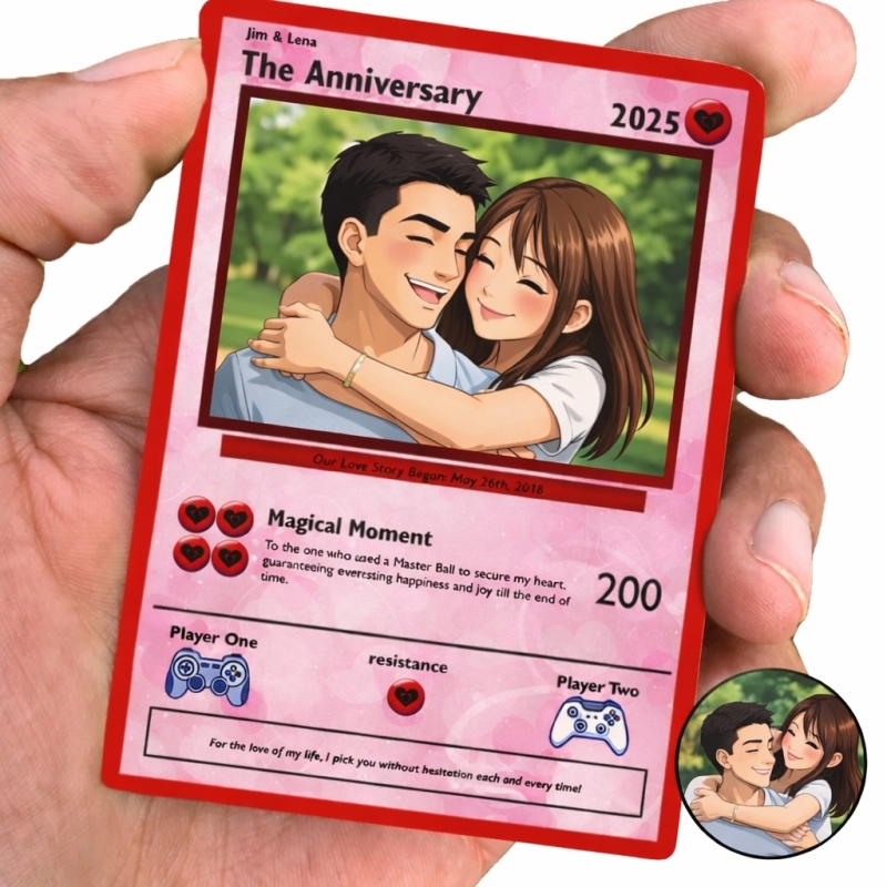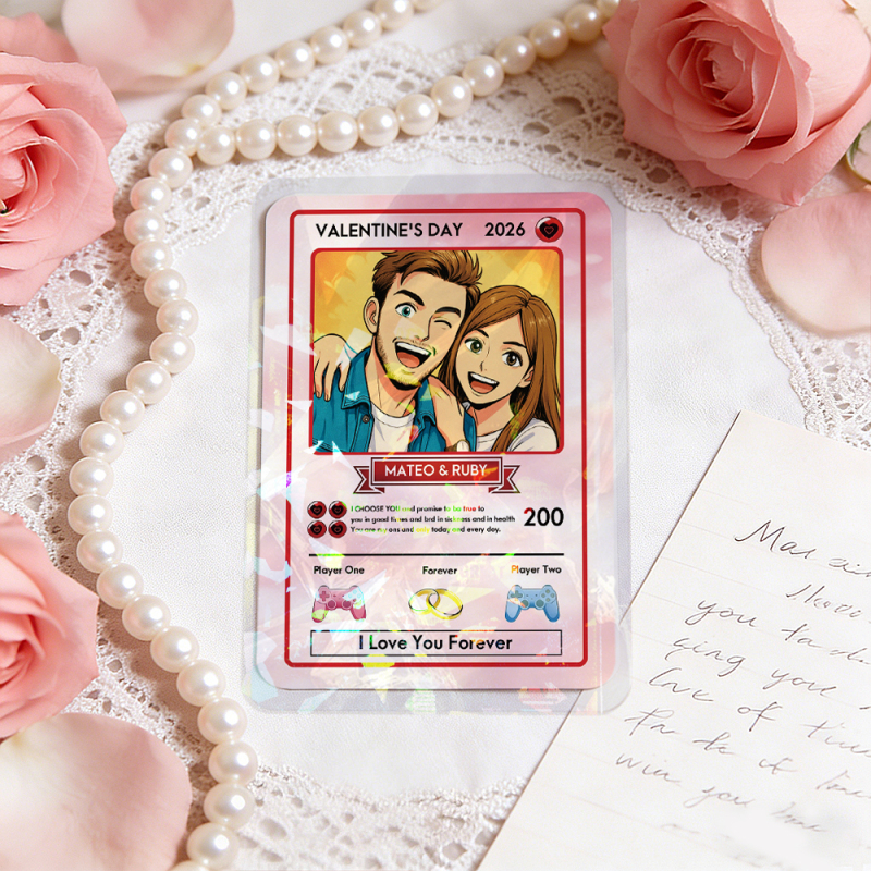 Personalized Valentine's Day Power Couple Card, Custom Anniversary Card Couple Photo Anime Style, Best Valentine's Day Gift for Lover