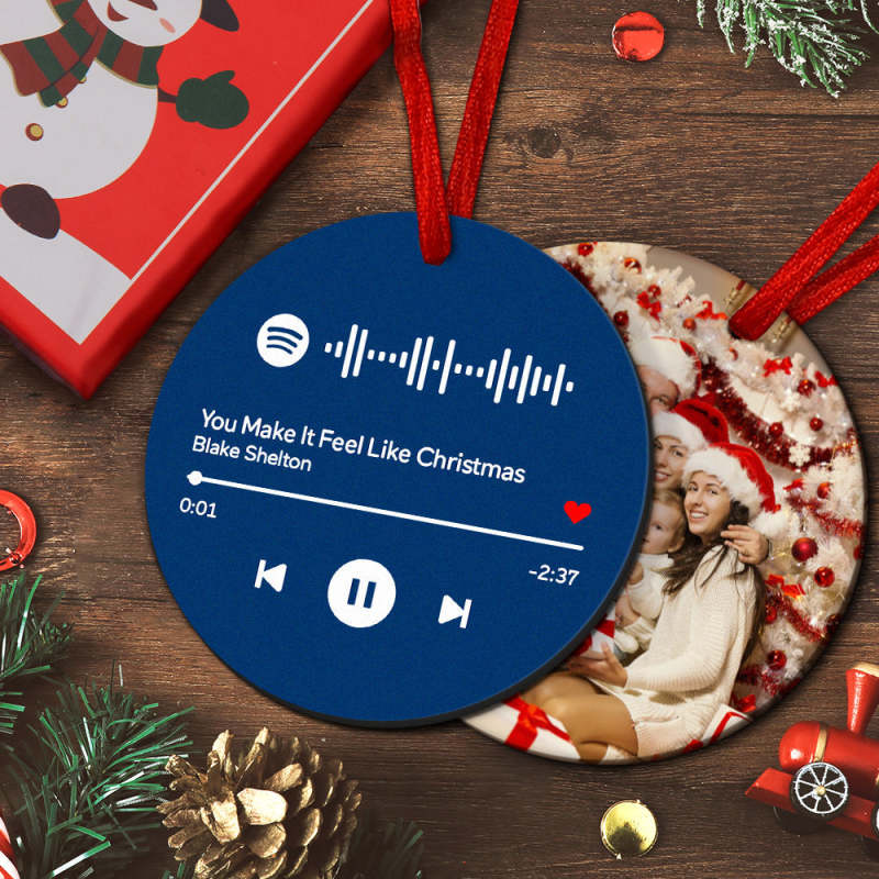 Custom Ornament-Scannable Spotify Code Ornaments Photo Hanging Ornament Engraved Custom Music Song Ornament Blue
