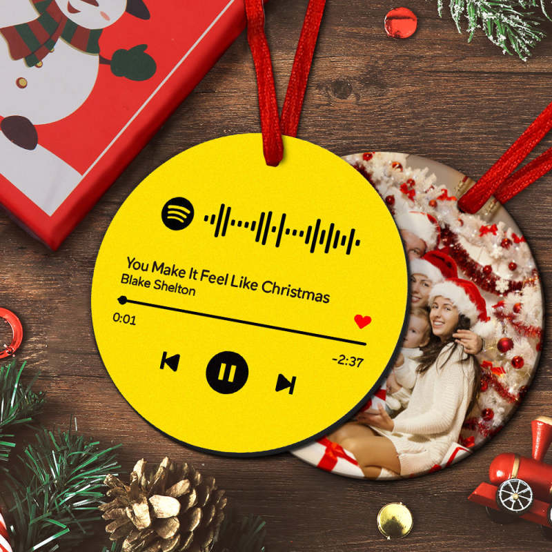 Custom Ornament-Scannable Spotify Code Ornaments Photo Hanging Ornament Engraved Custom Music Song Ornament Yellow
