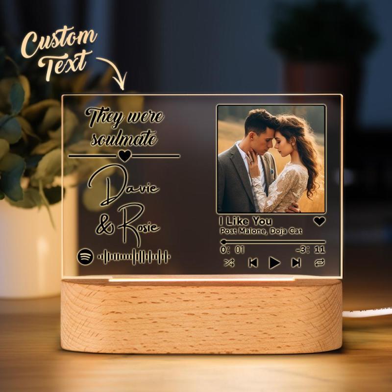 Custom Name Acrylic Night Light Spotify Code Night Light Personalized Text and Photo Night Light Gift For Her