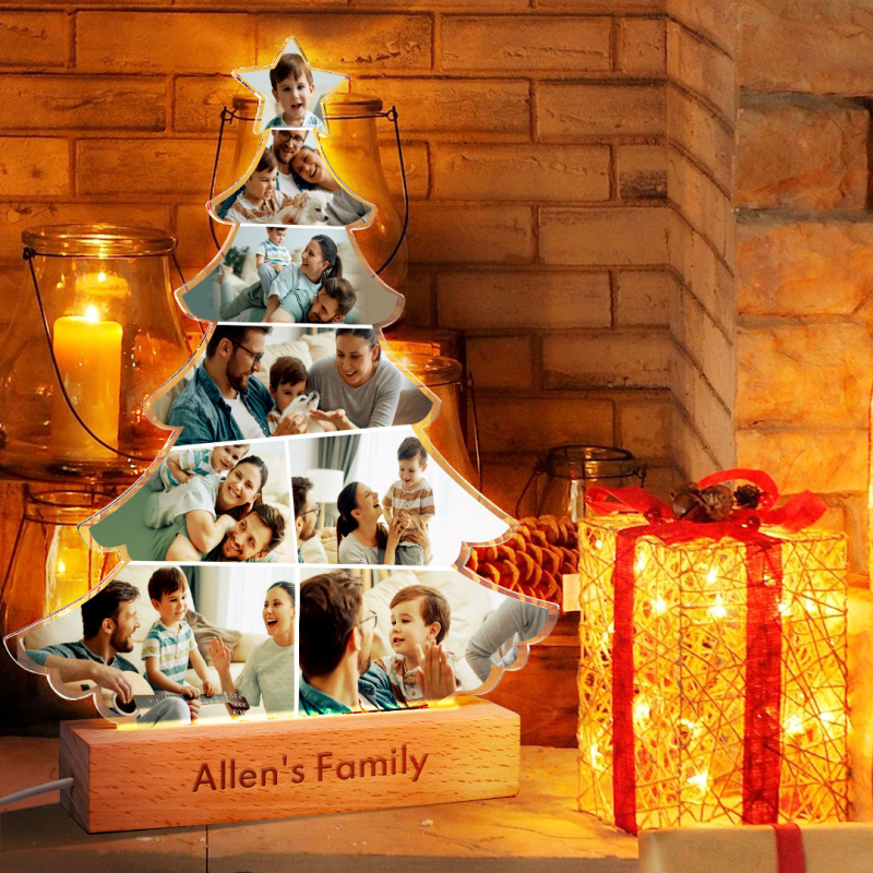 Custom Photo Christmas Tree Night Light Personalized Engraved Night Light Christmas Gifts