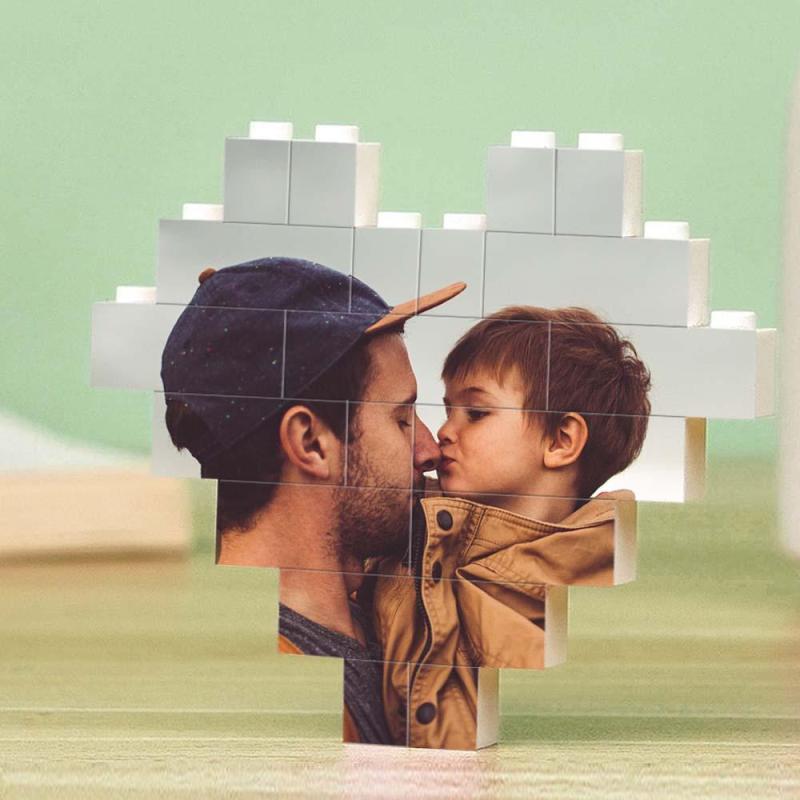 Custom Spotify Code Building Brick Personalized Photo and Text Block Heart Shape for Father's Day Gifts