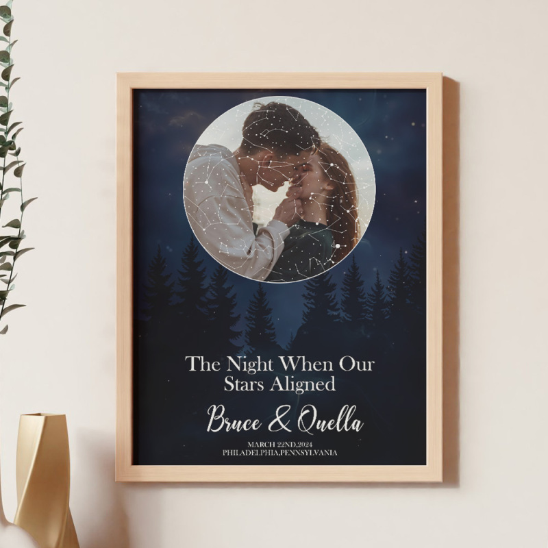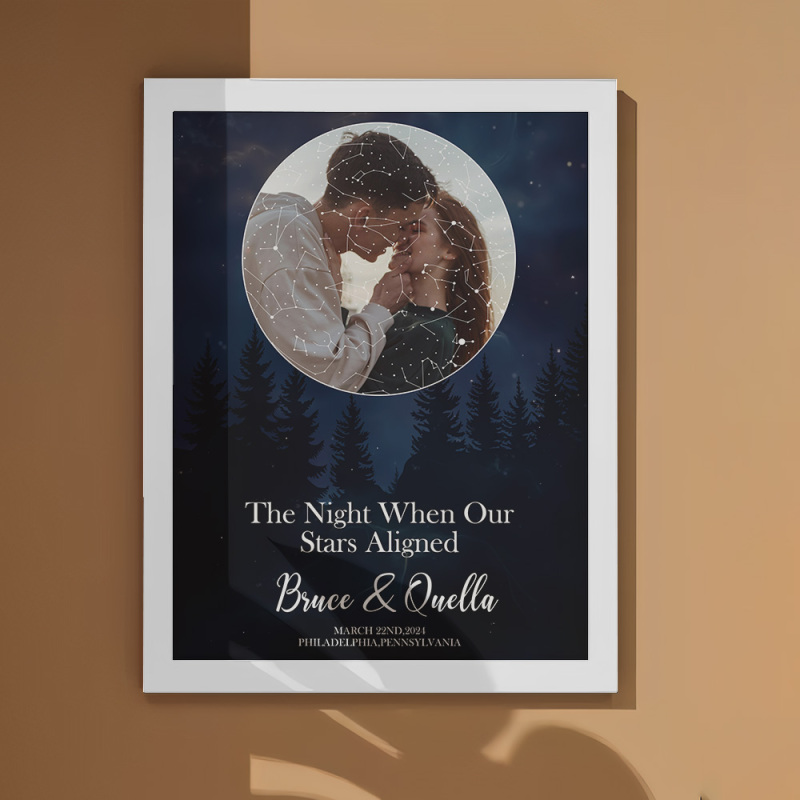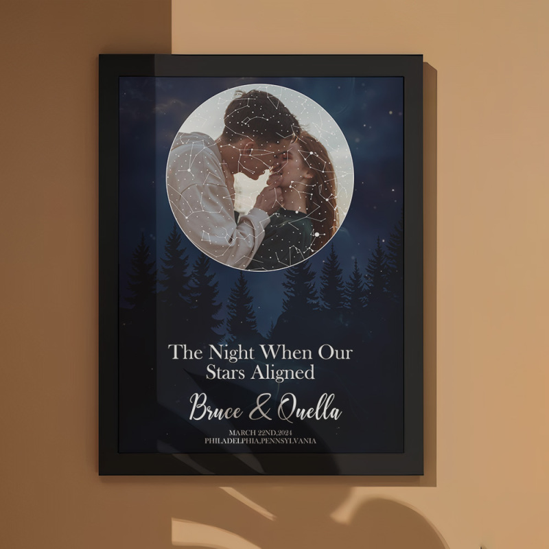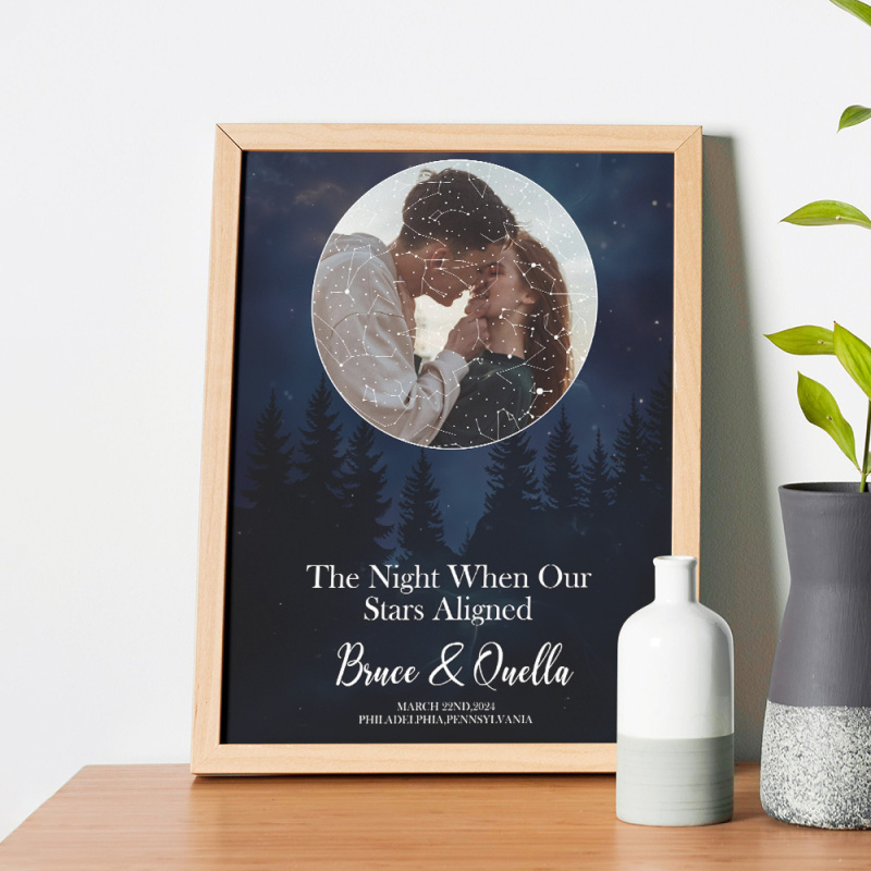 Custom Star Map Romantic Photo Frame Personalized Wall Art Gift for Couples Wedding or Anniversary Gift