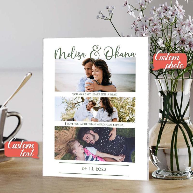 Home / Custom three Photo Glass Plauqe Romantic Photo Plaque Painting Gift