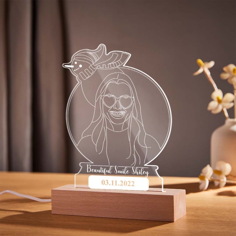 Personalized Snowman Photo Night Light Custom Engraved 3D Lamp 7 Colors Acrylic Night Light Christmas Day Gifts