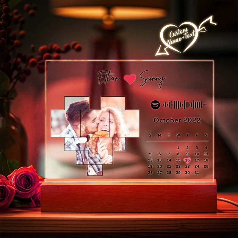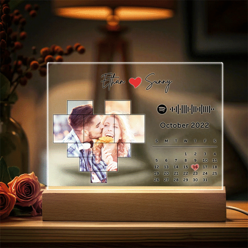 Personalized Spotify Calendar Acrylic Night Light Photo Decor Anniversary Gift For Couples