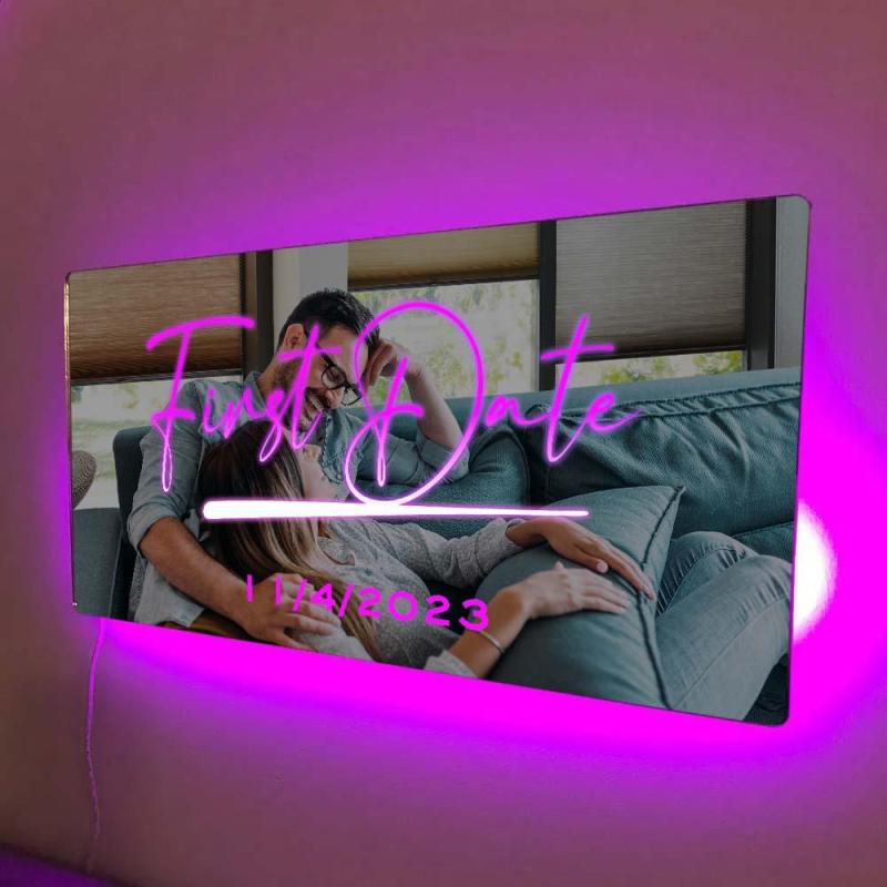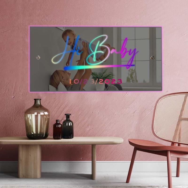 Custom Name Mirror Sign Custom Text Led Multi Color Light Up Wall Hanging Neon Signs Home Decor Anniversary Gift