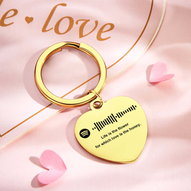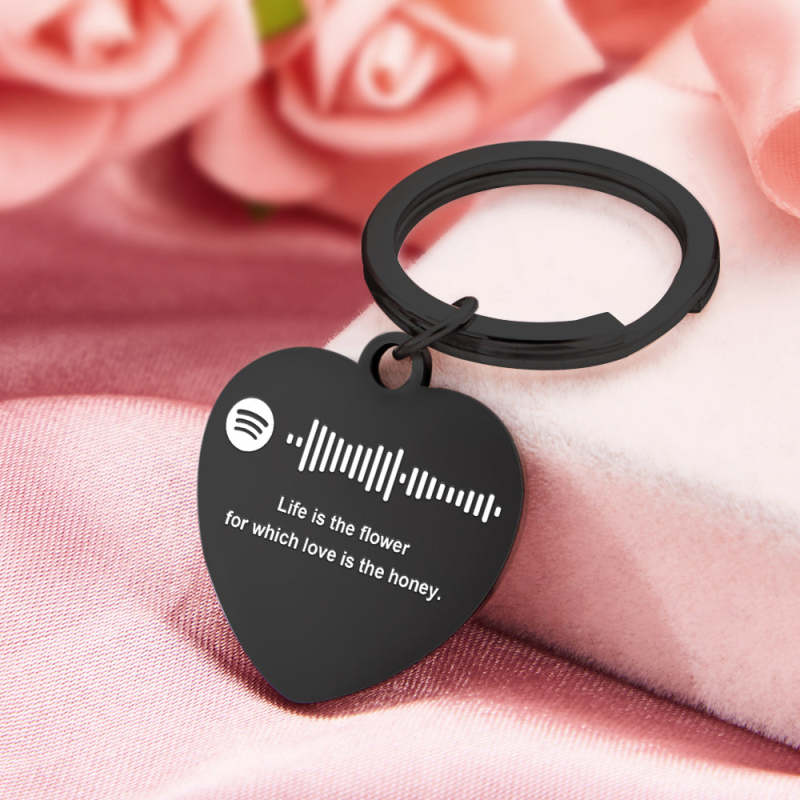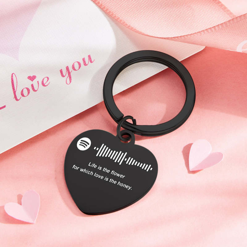 Scannable Music Code Engraved Keychain Personalized Heart-shaped Music Song Keychains Valentine's Day Gifts