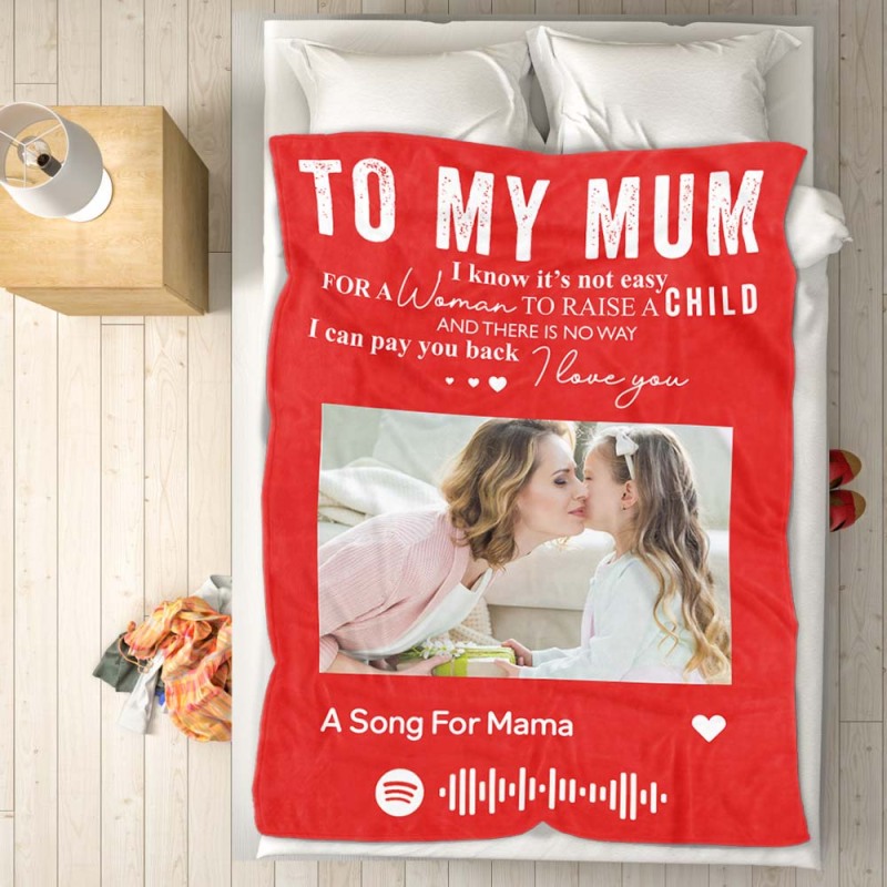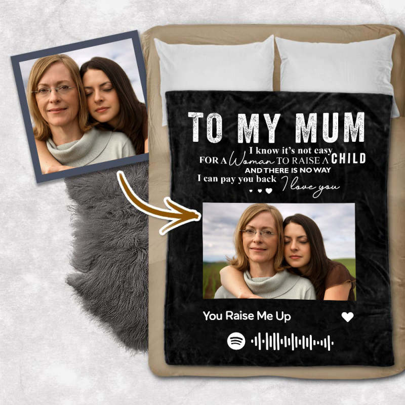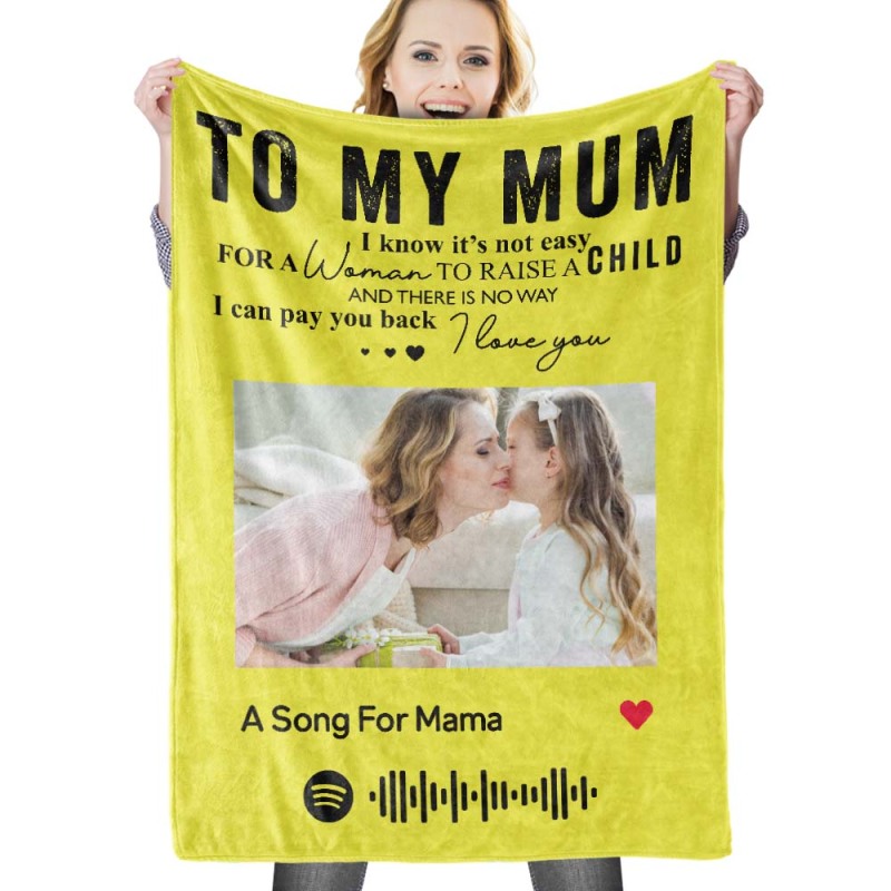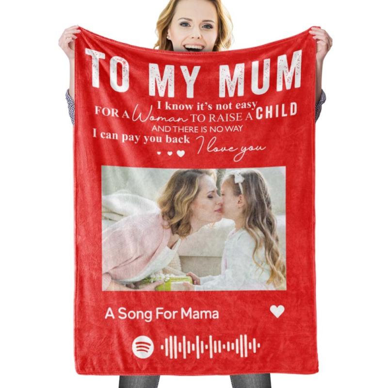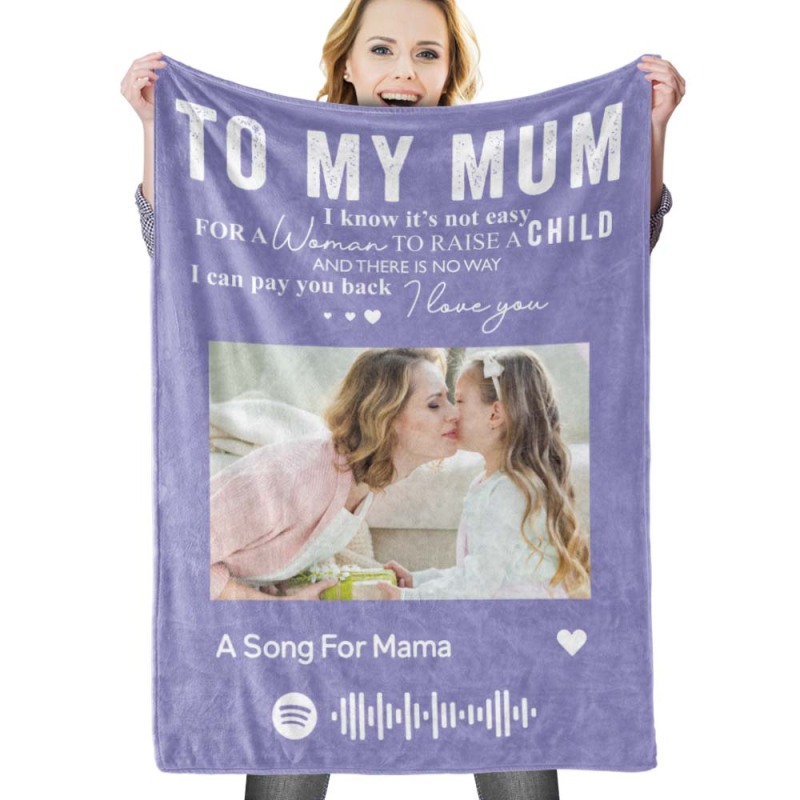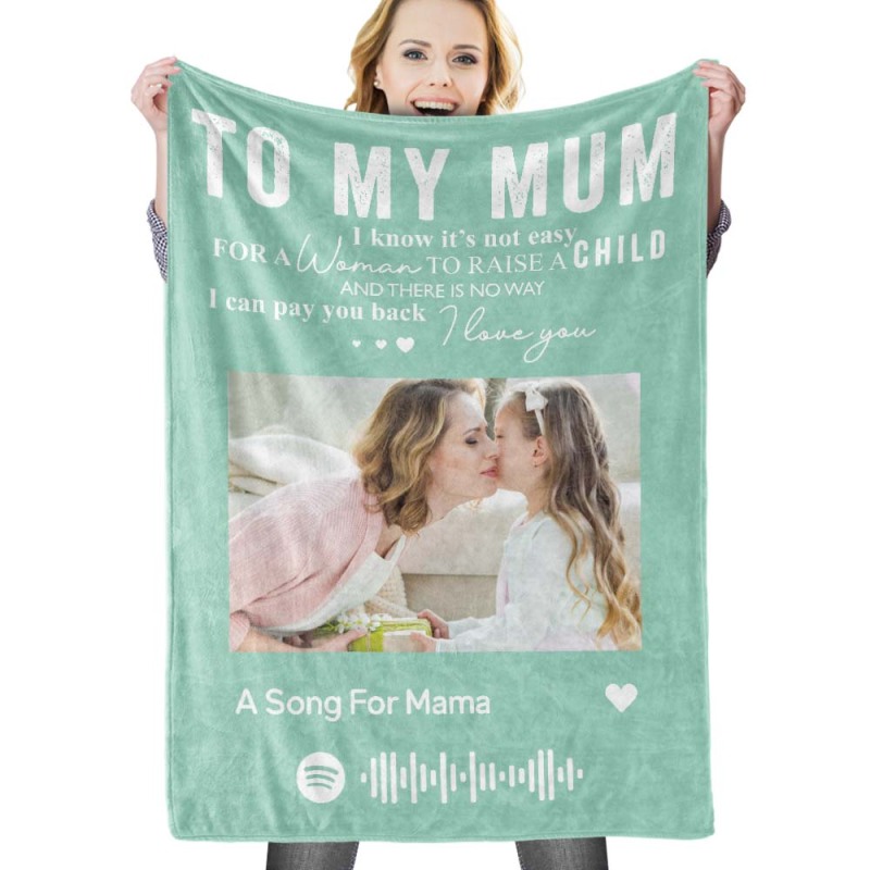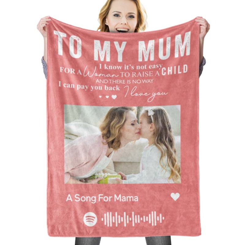 To My Mum Scannable Spotify Music Code Blanket Personalized Photo Blanket Black Blanket Mother's Day Gift