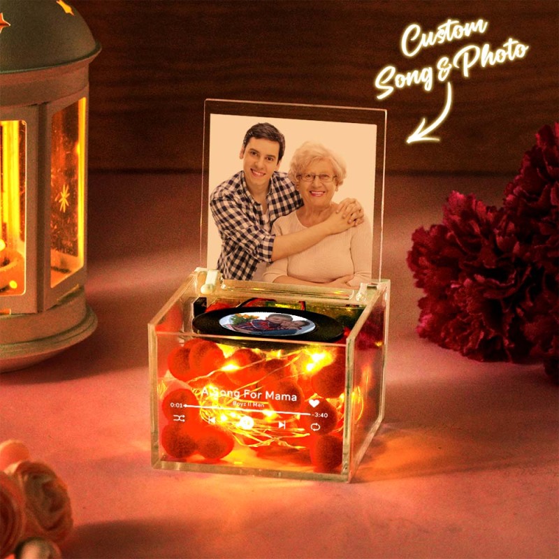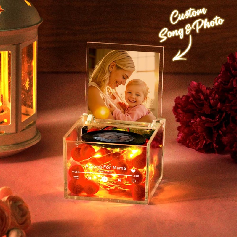 Mother's Day Gifts Unique Mini Vinyl Record Player for Loved Ones USB Charging with Auto-Play Music and Personalized Photo