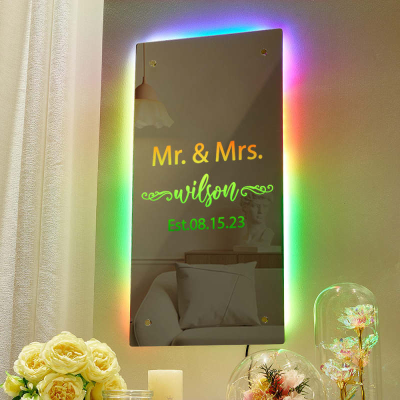 Valentine's Day Gift Mr and Mrs Personalized Name Mirror Light Gift for Couple